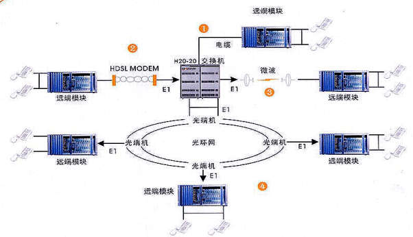 體系特點:利用廉價的HDSL設備,可以直接使用銅線長距離傳輸E1信號,可以實現(xiàn)1:64倍的擴容、線纜改造、提高線路利用率,并能夠簡化維護、方便管理。
