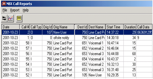 3Com公司的NBX系列網(wǎng)絡(luò)電話交換機具有強大的記錄、統(tǒng)計、輸出功能(CDR)?梢詫νㄟ^交換機平臺呼入呼出的電話、語音信箱留言、自動電腦話務(wù)員的訪問信息都記錄在案。只要通過NBX交換機所在局域網(wǎng)內(nèi)的任意一臺PC安裝查詢軟件,通過密碼認(rèn)證,就可以從NBX交換機下載電話記錄數(shù)據(jù)。