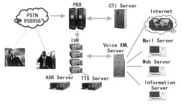 2001年6月,由北京無(wú)限商機(jī)通信技術(shù)有限公司與北京郵電大學(xué)CTI中心聯(lián)合研制的VoiceXML中文語(yǔ)音瀏覽器通過(guò)了中國(guó)電信、中國(guó)移動(dòng)、中國(guó)聯(lián)通、中國(guó)網(wǎng)通、信息產(chǎn)業(yè)部郵電科技委、北京郵電大學(xué)、IBM公司專(zhuān)家的聯(lián)合權(quán)威技術(shù)鑒定。這是國(guó)內(nèi)首家研制成功的VoiceXML中文語(yǔ)音瀏覽器,它由VoiceXML解析器、語(yǔ)音識(shí)別引擎、語(yǔ)音合成引擎和語(yǔ)音通道等部分組成。