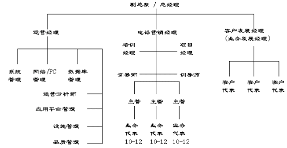在呼叫中心的組織結(jié)構(gòu)及職能分工上,外包型呼叫中心與企業(yè)自建型呼叫中心有很多共同點,它們間主要的區(qū)別在于外包型呼叫中心分工更細,而且有很多專門人員,而企業(yè)自建型呼叫中主的很多職能是由一人兼任或借助其它部門的支持和服務(wù)。從一個典型的外包型呼叫中心的組織結(jié)構(gòu)來看,通常會設(shè)置如下一些組織單位: