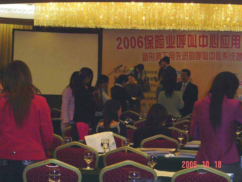 。。2006年10月18日,2006保險(xiǎn)業(yè)呼叫中心應(yīng)用暨電話營銷高峰研討會(huì)在北京天鴻科園大酒店隆重召開,以下是會(huì)議現(xiàn)場(chǎng)的相關(guān)圖片報(bào)道: