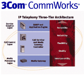 ---- 作為IP電話行業(yè)中的全球領(lǐng)先者,3Com公司首先于1999年1月推出了其基于強(qiáng)大的三層架構(gòu)的Total Control運(yùn)營(yíng)商級(jí)IP電話網(wǎng)關(guān),并于1998年10月底開(kāi)始發(fā)售其全套的三層架構(gòu)IP電話解決方案。