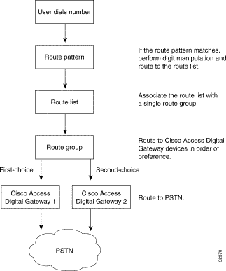 Callmanager使用Route Plan來路由所有的內(nèi)部和外部電話(PSTN),route patterns,route filers,route lists,和route groups提供了一種適應性較強的網(wǎng)絡設計方式。下圖是其基本框圖,圖中是一個帶有外部網(wǎng)關(guān)的情況,本方案的情況似乎要簡單些,在route groups處 不再做過多的劃分。