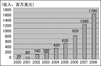 IP PBX亞太市場2000年~2008年預(yù)測增長圖