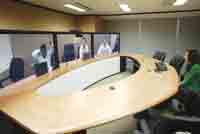 圖5.“網(wǎng)真”技術的演示。如真人大小的清晰圖像出現(xiàn)時,真是嚇人一跳。