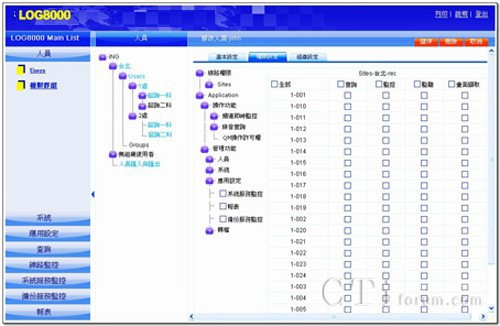 權(quán)限管理設(shè)計,采樹枝狀展開圖之設(shè)計模式,讓系統(tǒng)管理者可以輕易地掌握目前建立組織(各個據(jù)點(diǎn))、人員(為值機(jī)員、督導(dǎo)、評分員或管理者)與不同群組之狀態(tài),設(shè)定多層級的權(quán)限密碼,增加維護(hù)便利性。