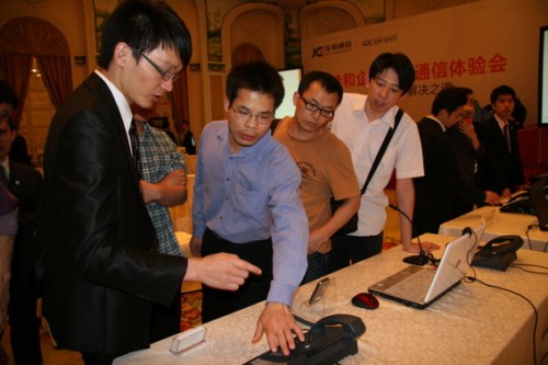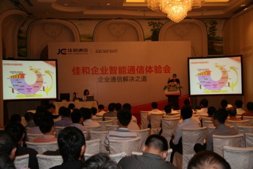 CTI論壇(ctiforum)4月25日消息(記者 潘婷婷): 廣東佳和通信技術(shù)有限公司主辦的首場企業(yè)智能通信體驗會,于2011年4月13日在廣州富力麗思卡爾頓酒店隆重召開,并取得圓滿成功。此次體驗會來自佳和通信的負責(zé)人和業(yè)內(nèi)專家就佳和企業(yè)智能通信平臺的應(yīng)用以及協(xié)同辦公的發(fā)展趨勢發(fā)表了主題演講,為所有到場的100多位來賓做了詳實的介紹。同時展示了佳和“睿”系列的7個應(yīng)用解決方案,并對拳頭產(chǎn)品——智能IP話機T600、移動分機M600、個人助理軟件IPA PRO等進行了現(xiàn)場演示和互動,其目的在于使現(xiàn)場嘉賓充分感受企業(yè)智能通信的價值和魅力,同時親身體驗到如何在在加速辦公自動化的同時提高企業(yè)效率、節(jié)約成本。