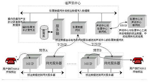 聲訊中心通過與彩票中心的聯(lián)網(wǎng)機(jī)定時(shí)地在開獎(jiǎng)前把每期彩票投注數(shù)據(jù)傳送給彩票中心;彩票中心在開獎(jiǎng)后把中獎(jiǎng)號(hào)碼、各等獎(jiǎng)的數(shù)目、獎(jiǎng)金金額等數(shù)據(jù)傳送到聲訊中心,聲訊中心將中獎(jiǎng)號(hào)碼和各等獎(jiǎng)金金額存入數(shù)據(jù)庫(kù)并根據(jù)中獎(jiǎng)號(hào)碼開獎(jiǎng),生成中獎(jiǎng)記錄,通過核對(duì)中獎(jiǎng)數(shù)目后,電信營(yíng)業(yè)部門可以開始兌獎(jiǎng)。聲訊中心每期將兌獎(jiǎng)結(jié)果傳送到彩票中心備案。