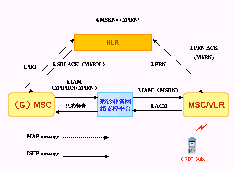 此種方案需要改造MSC交換機,使其支持彩鈴業(yè)務,在HLR中需要對那些開通多彩鈴音業(yè)務的用戶增加業(yè)務屬性,并對其進行標記。