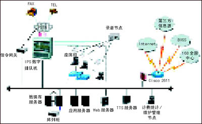 本項目采用新太科技交互式電話會議系統(tǒng)2.0版,系統(tǒng)各組成部分見圖1。前端接入設備采用SUNTEK-IPS數字排隊機,負責多方電話會議用戶和其他業(yè)務用戶接入的交換排隊、自動語音資源提供、座席服務資源提供、錄音、計費等等。SUNTEK-IPS數字排隊機是新太科技最新一代軟交換平臺,是整個系統(tǒng)平臺的核心。它綜合了新太科技歷代平臺的優(yōu)勢,采用世界上最先進的軟交換(包交換)技術和CompactPCI技術,支持主控CPU卡冗余和熱拔插,擁有更大規(guī)模的交換系統(tǒng)總線(CompactPCI的CTBus總線共有4096個時隙,理論上,單個機框可以支持4k×4k的交換)。SUNTEK-IPS數字排隊機基于自主開發(fā),擁有自主產權,保證了極高的性價比,已經通過了信息產業(yè)部入網認證。SUNTEK-IPS數字排隊機現已在十多個省成功開展全省業(yè)務的事實,證明了它具備技術先進、可靠性強等特點。