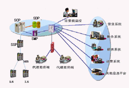 4、SMAP:負(fù)責(zé)在一定的權(quán)限內(nèi)為代理商提供接入訪問(wèn)功能,支持代理商通過(guò)撥號(hào)或DDN專(zhuān)線接入代理商管理系統(tǒng),代理商管理系統(tǒng)存儲(chǔ)代理商所有數(shù)據(jù),提供Web服務(wù)方式的應(yīng)用功能界面。代理商管理系統(tǒng)能夠?qū)I(yè)務(wù)受理的數(shù)據(jù)發(fā)送到智能網(wǎng)、交換機(jī)系統(tǒng),完成代理商對(duì)所代理業(yè)務(wù)的實(shí)時(shí)處理。