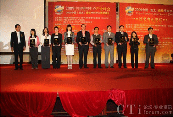 “2009中國呼叫中心產(chǎn)業(yè)峰會暨2009中國(亞太)最佳呼叫中心”頒獎典禮于10月15日在北京富力萬麗酒店舉行并取得圓滿成功。本次大會由中國電子商會呼叫中心及客戶關(guān)系管理專業(yè)委員會(CNCCA)主辦,密之云(北京)呼叫產(chǎn)業(yè)基地有限公司協(xié)辦,CTI論壇承辦。同時,大會還獲得了亞太客服與呼叫中心聯(lián)盟(APCCAL)、上海市呼叫中心與無線尋呼協(xié)會和北京市通信行業(yè)協(xié)會呼叫中心專業(yè)委員會等機構(gòu)的大力支持。