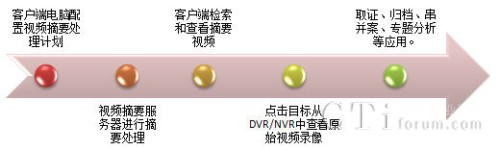 新太視頻摘要比對系統(tǒng)(SUNTEK-VSCS)基于尖端的圖像/視頻理解與圖像搜索技術(shù),通過對海量視頻錄像的智能分析,提取出錄像中的運動分量,并進(jìn)行視頻內(nèi)容的整合壓縮,使監(jiān)控人員能在很短的時間內(nèi)通過視頻摘要了解監(jiān)控區(qū)域發(fā)生的事件;系統(tǒng)同時可通過目標(biāo)的特征進(jìn)行搜索比對,快速定位車輛、人員或其它物體等目標(biāo),并提取回放特定目標(biāo)的錄像內(nèi)容。通過該系統(tǒng)可節(jié)約大量的時間與精力,解決人工查看整個視頻流所帶來的困擾。