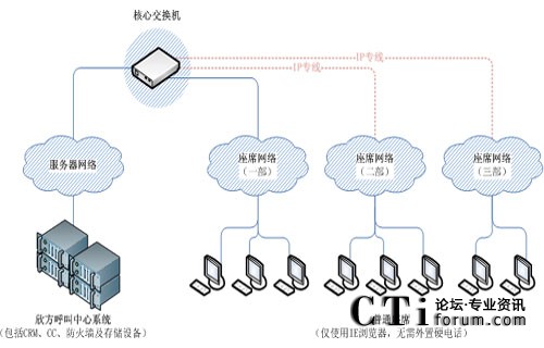 河北博岳呼叫中心職場分為1個中心職場和2個分部,之間相隔幾公里至幾十公里,以VoIP通路連接,所有職場統(tǒng)一管理,最大程度的適應了呼叫中心建設(shè)的個性化需求,同時,這種布局還大大降低了租用場地的成本,也方便話務(wù)員就近上班。