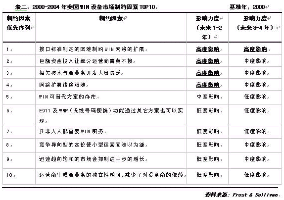 本地或區(qū)域價(jià)格方案在我們預(yù)測(cè)的時(shí)期內(nèi), 將始終是手機(jī)用戶采納的最多的一種方案。 1999年,在美國(guó)有5千7百 萬,大約70%的用戶是采用本地或區(qū)域方案, 而該方案產(chǎn)生的營(yíng)業(yè)額為274.5億美元, 約占市場(chǎng)總規(guī)模的58.6%。Frost & Sullivan 預(yù)計(jì),到2005年, 46.6%的手機(jī)用戶還會(huì)使用該種方案, 而該方案產(chǎn)生的營(yíng)業(yè)額將為291.2億美元,占市場(chǎng)總規(guī)模的比例將縮至36.1%。