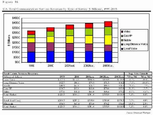讓我們首先來看看世界電信服務(wù)市場。Frost & Sullivan公司的研究顯示,世界電信服務(wù)市場仍然保持了持續(xù)增長的趨勢,長話市場逐漸萎縮,市話市場基本穩(wěn)定,而移動和數(shù)據(jù)業(yè)務(wù)都表現(xiàn)了強勁增長,這一趨勢在可預(yù)見的將來還將持續(xù)下去?偟膩碇v,電信服務(wù)仍然是世界增長速度最快的市場之一!