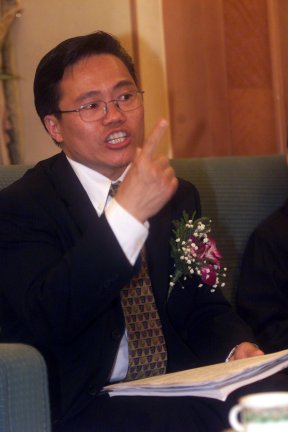CTI論壇斑竹雙子星(趙棟偉)正為現(xiàn)場幸運觀眾頒獎