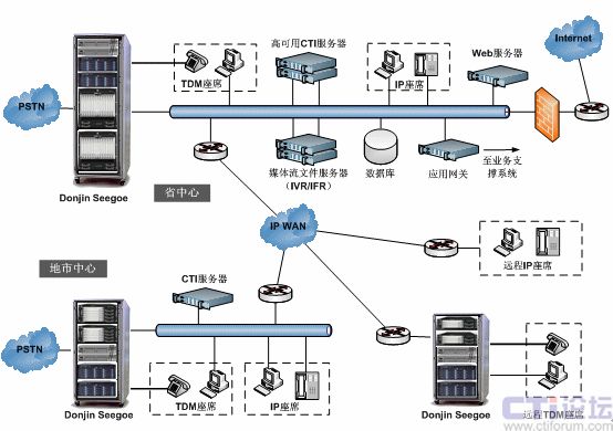 東進Seegoe呼叫中心解決方案的系統(tǒng)架構如圖四所示。