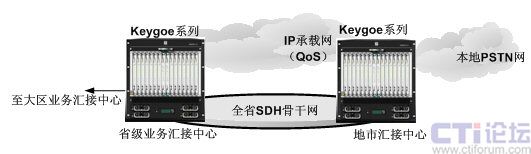 利用東進(jìn)Keygoe系列多媒體交換機(jī)構(gòu)建全省乃至于全國的綜合增值業(yè)務(wù)平臺,實(shí)現(xiàn)業(yè)務(wù)的全省或全國的統(tǒng)一運(yùn)營。通過分布在不同地區(qū)的東進(jìn)Keygoe系列多媒體交換機(jī)實(shí)現(xiàn)業(yè)務(wù)的負(fù)載均衡、業(yè)務(wù)能力的冗余備份。其結(jié)構(gòu)圖如下圖所示。