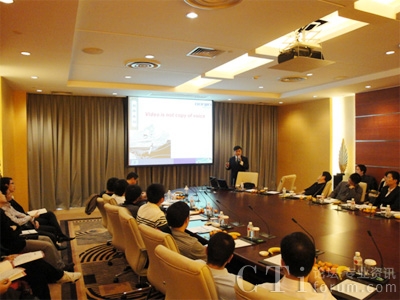 東進(jìn)Keygoe產(chǎn)品經(jīng)理劉駿先生是本次活動(dòng)當(dāng)之無愧的頂梁柱,活躍在沙龍活動(dòng)的每一站。他對(duì)3G通信市場(chǎng)進(jìn)行了深入淺出的分析,借鑒國外成功的案例經(jīng)驗(yàn),并對(duì)中國可能的熱點(diǎn)業(yè)務(wù)做出東進(jìn)的預(yù)測(cè),即在將來,手機(jī)上網(wǎng),視頻點(diǎn)播,定位服務(wù)以及下載服務(wù)可能成為熱點(diǎn),同時(shí),重點(diǎn)列舉和分析了東進(jìn)在3G業(yè)務(wù)應(yīng)用的探索成果和經(jīng)驗(yàn)。會(huì)中對(duì)將視頻功能嵌入到“3G總機(jī)一號(hào)通”這類應(yīng)用的描述,非常引人入勝,尤其讓人注意的是,他認(rèn)為3G視頻在將來不會(huì)作為一個(gè)單獨(dú)的業(yè)務(wù)而存在,而公眾業(yè)務(wù)并沒有如預(yù)期般成為主流。此外,以國慶60周年閱兵空中梯隊(duì)現(xiàn)場(chǎng)指揮調(diào)度系統(tǒng)應(yīng)用為例,對(duì)行業(yè)呼叫中心的成功案例分享以及重點(diǎn)行業(yè)的前景預(yù)測(cè)分析也給客戶留下很深刻的印象。劉駿表示,對(duì)于正進(jìn)入新格局的市場(chǎng),多媒體交換機(jī)正愈加凸顯其多媒體處理性能,并加速與其他通信系統(tǒng)的融合,而理解客戶的需求,成為重中之重。
