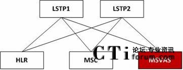 MSVAS平臺(tái)可以通過(guò)七號(hào)信令網(wǎng)與移動(dòng)核心網(wǎng)中的各個(gè)網(wǎng)元進(jìn)行對(duì)接,如與七號(hào)信令網(wǎng)中的LSTP進(jìn)行對(duì)接,通過(guò)ISUP、TUP以及MAP對(duì)核心網(wǎng)中HLR、MSC、短信中心等網(wǎng)元進(jìn)行訪問(wèn),實(shí)現(xiàn)移動(dòng)管理(位置查詢(xún))、呼叫處理(主要是獲取路由信息)、業(yè)務(wù)登記、短消息業(yè)務(wù)等功能,其連接方式如下圖所示: