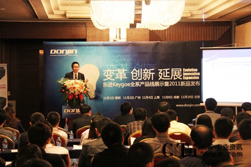 圖:產(chǎn)品經(jīng)理劉駿與大家分享東進(jìn)keygoe全系產(chǎn)品線(xiàn)的設(shè)計(jì)理念