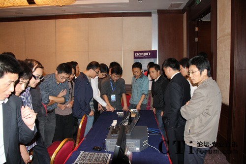 茶歇時(shí)間,嘉賓迫不及待走到東進(jìn)keygoe產(chǎn)品演示臺(tái)參觀(guān),并與東進(jìn)工程師從技術(shù)、產(chǎn)品和應(yīng)用方面熱烈交流,尤其是對(duì)東進(jìn)帶來(lái)的兩套演示系統(tǒng)興趣濃厚,都有親密接觸一把的興致。