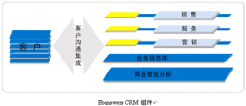 。。作為企業(yè)級(jí)客戶關(guān)系全面解決方案,Ebanswers CRM包含了可無縫整合又可獨(dú)立運(yùn)行的三個(gè)功能組件:銷售,營銷,服務(wù)流程自動(dòng)化軟件系統(tǒng);客戶溝通集成信息化方案;深層商業(yè)智能分析。其中客戶溝通層組體是Ebanswers