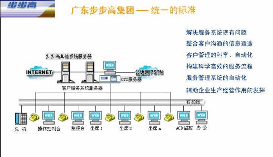 步步高呼叫中心最有效益的應用就是在客戶服務管理系統(tǒng)中發(fā)揮前端強有力的支持作用,它不但給客戶提供高級的交互式服務,而且為業(yè)界確定了新的客戶服務滿意標準。