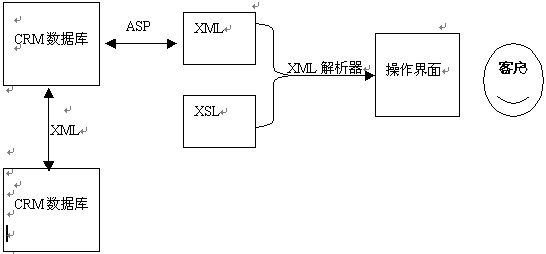 包括客戶資料,銷售報(bào)表等相關(guān)的客服信息都存儲(chǔ)在數(shù)據(jù)庫中,通過ASP應(yīng)用程序取出需要的數(shù)據(jù)生成符合條件的XML文檔,再通過安裝在服務(wù)器端的XML解析器按照預(yù)先設(shè)定的排版樣式XSL解析XML文檔,最后生成符合條件的HTML格式的CRM操作界面呈現(xiàn)在客戶面前。客戶數(shù)據(jù)可能來自不同的數(shù)據(jù)庫,并且都有各自不同的復(fù)雜格式。但客戶與這些數(shù)據(jù)庫間只通過一種標(biāo)準(zhǔn)語言進(jìn)行交互,那就是XML。由于XML的自定義性及可擴(kuò)展性,它足以表達(dá)各種類型的數(shù)據(jù)?蛻羰盏綌(shù)據(jù)后可以進(jìn)行處理,也可以在不同數(shù)據(jù)庫間進(jìn)行傳遞。