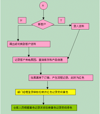 可以根據(jù)訂單上的不同顏色來(lái)判斷流程走到的階段。流程開(kāi)始時(shí)候,訂單的列表中會(huì)產(chǎn)生一條紅色記錄,部門(mén)經(jīng)理登錄審核后使該紅色記錄變成黃色,倉(cāng)庫(kù)人員根據(jù)黃色記錄發(fā)貨后使黃色記錄變成綠色。