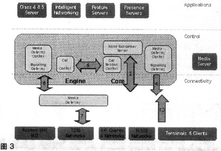 連接層由3個關(guān)鍵部分組成:用戶設備、媒體網(wǎng)關(guān)和IP傳輸。ENGINE解決方案的媒體網(wǎng)關(guān)可以支持從很小數(shù)量的用戶擴展到數(shù)百萬用戶。本地交換機、匯接交換機和用戶交換機可以接入到媒體網(wǎng)關(guān)。多媒體用戶可通過SIP終端和IAD接入。ENGINE支持采用V5、ISUP、SIP和H.248等各種接入節(jié)點的用戶。在ENGINE解決方案中,媒體網(wǎng)關(guān)同時也是接入網(wǎng)關(guān),可以實現(xiàn)C5電話業(yè)務和基于SIP的寬帶用戶功能。