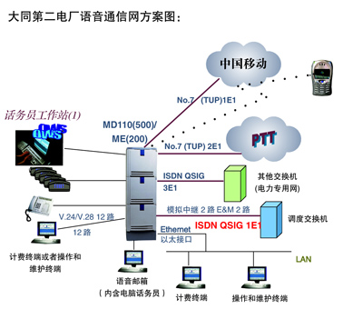 大同第二發(fā)電廠二期擴建需要建設一個新的語音交換系統(tǒng),既用于電廠內行政通信,又可以成為廠內和公網(wǎng)語音通信匯接中心。
