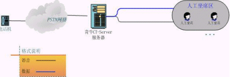 青牛CT-Server服務(wù)器由語音板卡加上青牛CT-Server軟件包組成,其特點是安裝容易、價格低。這種類型的呼叫中心已經(jīng)具有了語音導(dǎo)航和人工服務(wù)的功能,可以處理小壓力的客戶呼叫了。