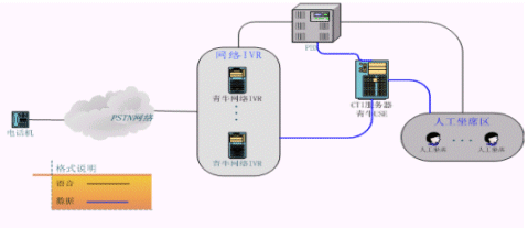 青牛IVR集群方案將原來放在PBX后面的IVR"前移",PBX的LINK只有和坐席相關(guān)的信息,大量的和IVR相關(guān)的呼叫信息被剝離出去,由青牛網(wǎng)絡(luò)IVR直接自行處理。根據(jù)統(tǒng)計,自動業(yè)務(wù)的呼叫量在整個客服中心呼叫量中占大多數(shù),當呼叫量越大的時候,該方案的優(yōu)勢就越明顯。