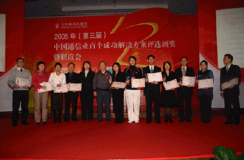 經(jīng)過長(zhǎng)達(dá)6個(gè)月的方案征集、遴選和最后打分綜合評(píng)選,"2005(第三屆)中國(guó)通信業(yè)百個(gè)成功解決方案評(píng)選"活動(dòng)結(jié)果終于在2005年度最后一周揭曉,成為獻(xiàn)給我國(guó)通信行業(yè)發(fā)展的第一份新年禮物。