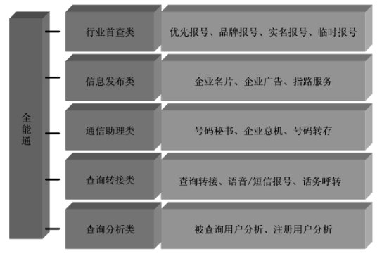 面向個人用戶提供簽約企業(yè)的行業(yè)推薦、品牌名稱、企業(yè)實名、企業(yè)臨時號碼等查詢方式,提高簽約企業(yè)的查詢率,使企業(yè)獲得更多的商機。包括以下五類子業(yè)務:
