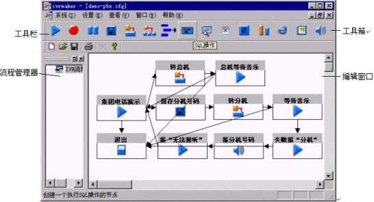 很簡單,啟動ZingServ IVR流程的定制工具IVRMaker后,新建或打開一個流程,然后按照以下4步進(jìn)行操作: