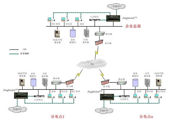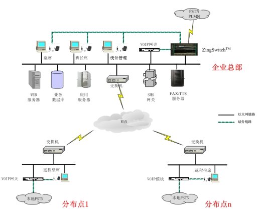 - 各個分布點的呼入和呼出都直接通過當地通信服務商,既保證了語音服務的質量,又減少了系統的通話費用。