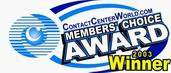 “用戶最佳選擇獎(jiǎng)”專門頒發(fā)給呼叫中心方面的最佳公司、解決方案或軟件,獎(jiǎng)項(xiàng)由所有呼叫中心的使用者投票評(píng)選而得。ContactCenterWorld.com