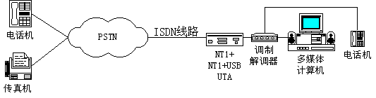 NT1、NT1+與TA卡合用與計(jì)算機(jī)相連,NT1+USB、UTA可以和計(jì)算機(jī)直接相連,進(jìn)行數(shù)據(jù)通信,但他們合適計(jì)算機(jī)與外界通過(guò)ISDN線路進(jìn)行數(shù)據(jù)連接,無(wú)法讓計(jì)算機(jī)處理傳統(tǒng)的電話語(yǔ)音呼叫功能。