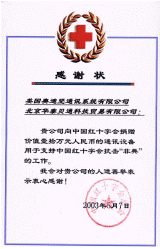 4月,SARS在北京肆無忌彈的橫行,其它國家和地區(qū)也都不同程度地受到SARS的侵害,給人民的生活和工作帶來了極大的影響,人們的身體健康和生命安全受到了威脅。中國紅十字會廣大工作人員對此次疫情迅速響應(yīng),為了支持中國中國紅十字會總開展SARS疫情的救助和捐贈工作,幫助其通過現(xiàn)代化的通訊手段快速準(zhǔn)確的進(jìn)行話務(wù)處理,以便更好地保護人民的生命和健康,4月30日,奧迪堅通訊系統(tǒng)(上海)有限公司聯(lián)合北京華泰貝通科技貿(mào)易有限責(zé)任公司向中國紅十字會總會捐贈了價值約10萬余人民幣的呼叫中心系統(tǒng),軟件以及相關(guān)服務(wù),以實際行動幫助中國紅十字會總會抗擊SARS。