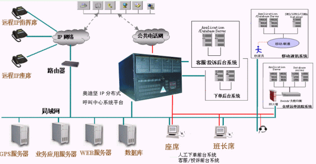 物流是商業(yè)發(fā)達社會必然高速度發(fā)展的產(chǎn)業(yè)之一,不僅僅要求物品從供應地向接收地的實體流動過程,同時也是信息流和資金流的過程,根據(jù)實際不同的需要,需要運輸、儲存、裝卸、搬運、包裝、流通加工、配送、信息處理等基本過程有機結(jié)合,從而完成用最短的時間合理將物品運向目的地。在整個物流過程中,涉及到的各個環(huán)節(jié),分散在不同的區(qū)域,需要一個信息平臺將整個物流環(huán)節(jié)聯(lián)接起來,及時把握客戶的定貨需求,進行車輛的調(diào)度管理,庫存管理以及票據(jù)管理等,力求實現(xiàn)用最少的庫存,最短的運輸距離滿足客戶的需求,F(xiàn)代物流企業(yè)與以往的物流企業(yè)不同,不僅僅局限于物流中的某一個環(huán)節(jié),而是普遍采用了信息化管理技術,如ERP、物流管理(LM)、SCM等應用系統(tǒng),并通過Internet將遍布在各地的物流中心與客戶連接起來,形成一個高效率的物流配送網(wǎng)絡。建立在奧迪堅IPDCC的分布式呼叫中心平臺上的光大科技物流客戶服務系統(tǒng),以IP技術為核心在網(wǎng)絡上構(gòu)建一個語音和數(shù)據(jù)的統(tǒng)一平臺,在一臺服務器上融合了CTI、PBX、ACD、VoIP、Voice、Mail,Recording,Call