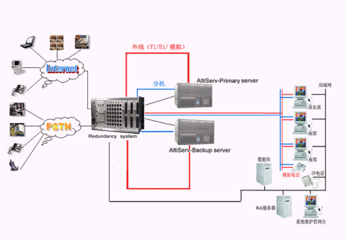 奧迪堅全球領(lǐng)先的CTI平臺的供應(yīng)商和IP分布式呼叫中心的領(lǐng)導者,在技術(shù)上不斷創(chuàng)新,對產(chǎn)品精益求精,尤其體現(xiàn)在對系統(tǒng)的運行安全性的要求上,為了防止電信接入設(shè)備或者企業(yè)網(wǎng)絡(luò)出現(xiàn)故障而造成的呼叫中心服務(wù)中斷,奧迪堅呼叫中心系統(tǒng)提供安全保護冗余切換系統(tǒng),來保障呼叫中心在意外情況下的正常工作,該安全冗余切換系統(tǒng)通過對電源、T1/E1、模擬trunk、分機座席、以及各種網(wǎng)絡(luò)鏈路串口等備份切換來實現(xiàn)可靠的運行。除此之外,奧迪堅系統(tǒng)本身也提供強大的安全保障,由于采用先進IP內(nèi)核一體化設(shè)計,集傳統(tǒng)PBX、CTI服務(wù)器、IVR、ACD、Recording、FAX等眾多設(shè)備于一體,這樣有效的避免了因為外掛設(shè)備過多以及設(shè)備供應(yīng)商的不同而存在的兼容性的問題,從而降低了給呼叫中心系統(tǒng)帶來的的不穩(wěn)定的安全隱患。在系統(tǒng)之外依靠安全保護冗余切換系統(tǒng),可以實現(xiàn)外線、分機、以及各種鏈路接口的雙倍安全運行。當啟用了冗余功能,并且已經(jīng)激活了主服務(wù)器,系統(tǒng)會將所有的許可協(xié)議,配置,語音信箱文件以及客戶短語等復(fù)制到次服務(wù)器上。