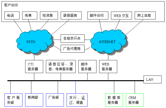 大多數(shù)媒體單位都提供自己的新聞線索熱線電話,廣告熱線電話,許多媒體擁有自己的宣傳網(wǎng)站,有的媒體單位率先建立起呼叫中心,提供7*24的服務(wù)。有些觀點錯誤地認(rèn)為CRM是呼叫中心的附屬品,因而不能充分發(fā)揮CRM的強大功效,讓整個單位以客戶為中心協(xié)同運作,提高競爭力。
