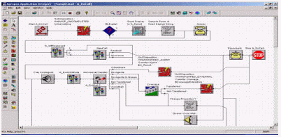 Apropos應用程序設計是一個基于GUI的先進的電話PIL版本。呼叫流曲線圖通過放置和連接TeleObjects被建立,在格子之上的圖線代表各種各樣的呼叫流功能。當數(shù)據(jù)被保存時,因為PIL代碼,呼叫流的圖線會被自動地產生。然后這個合成的結果通過在Apropos服務器上被運行來實現(xiàn)改變呼叫處理系統(tǒng)。