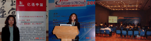 一年一度的中國(guó)呼叫中心與客戶(hù)關(guān)系管理大會(huì)于2006年4月3日在北京國(guó)際會(huì)議中心隆重開(kāi)幕,并與4月5日?qǐng)A滿(mǎn)閉幕。今年大會(huì)主題為:新時(shí)期的呼叫中心及CRM,成就與挑戰(zhàn)。此次活動(dòng)吸引了與呼叫中心相關(guān)的各界人士的光臨,共計(jì)1000多人與會(huì),活動(dòng)連續(xù)三天。億迅(中國(guó))軟件有限公司(eSOON)作為呼叫中心及CRM業(yè)優(yōu)秀的開(kāi)發(fā)商和集成商,在本次大會(huì)上以特別贊助商的身份閃亮登場(chǎng),給大家留下了深刻的印象,并為大家?guī)?lái)呼叫中心及CRM領(lǐng)域最新的趨勢(shì)分析及最佳的解決方案。
