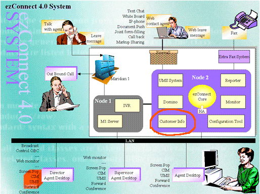 作為一種成功的企業(yè)應用案例,這種方案已經成功的應用在我們的企業(yè)級多媒體呼叫中心 ezConnect產品中,該產品能同時處理傳統(tǒng)呼叫中心的電話請求和以互聯(lián)網為中心的Web 請求,同時配備多種實時交流手段,軟電話功能和基于web 的文本交談,圖片共享,白板,文檔推送,IP電話,UMS, SMS 和WAP 等為客戶提供很方便且實用的功能, 并且提供基于特定技能路由的分配器,同時處理電話和Web請求。而且同時支持多種語言并提供統(tǒng)一的配置工具。當該請求到達座席時,在座席的桌面上彈出客戶的基本信息和交易信息,座席可以根據(jù)這些信息給客戶提供更加個性化的服務。本文就針對該產品的實際開發(fā)和實現(xiàn), 以及工作中的一些感想來與大家共同探討客戶信息管理的應用和前景。