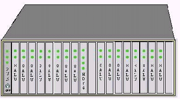 見上圖 DAS120主機所用的機框為19英寸標準機框,可直接裝入19英寸機柜,也可放置在桌面。機框共有20個槽口,兩邊可插兩塊電源板PSU,中間插數(shù)字中繼接口板HDT4,其余16個槽可插15塊模擬用戶板8ALU(或8ATU)。8ALU每塊板為8路,一個機框總共120路。