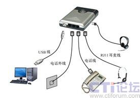 “話務(wù)通”設(shè)計(jì)新穎,接口包括電話線路接口、電話機(jī)接口、耳機(jī)接口和USB通信接口。配置立體聲揚(yáng)聲器和環(huán)型提示燈,提供聲光提示!霸拕(wù)通”能夠提供IP網(wǎng)絡(luò)電話,自動(dòng)應(yīng)答,自動(dòng)外撥,來電彈屏,語音錄放,語音留言等功能。